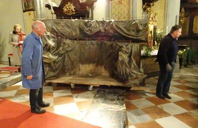 Aufbau der Krippe in der Pfarrkirche am 20. Dezember 2017