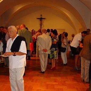 Die feierliche Begrüßung erfolgte durch Vorsitzenden des PGRs, Franz Rappold, einleitenden Worte sprach dann die Organisatorin der sehr gelungenen Collagen, Angelika Hütter, und Pater Simon dankte allen, die zur heutigen Vernissage gekommen sind, darunter u.a. den Em.-Diözesanbischof Dr. Egon Kapellari, den Armen-Pfarrer Wolfgang Pucher, die gesamte heimische Politprominenz sowie die anwesenden Künstler Peter Angerer, Gerald Brettschuh, Ruth Lackner und Kurt Zisler.