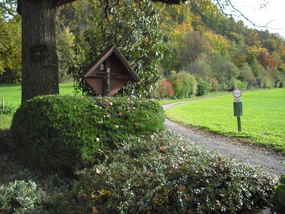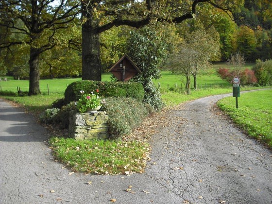 Auf dem Weg nach Pfannberg, an der Abzweigung zum Gut Pichlhof, steht ein rötliches Wegkreuz aus Holz mit einem Kruzifix, der künstlerischen Darstellung des gekreuzigten Christus. Das Kruzifix (lat. „ans Kreuz geheftet“) ist Sinnbild für das Opfer Christi, das dieser zur Erlösung der Menschheit gebracht hat.