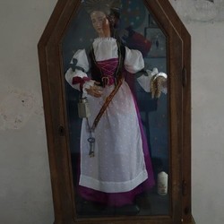 Über dem Schrank befinden sich ein freigelegtes spätgotisches Apostelkreuz und ein Bild von der Verehrung Jesu mit nackter Schulter. An der rechten Wand hängt ein bemerkenswertes Ölgemälde, ebenfalls aus der Spätgotik, mit einer Inschrift über die Begehung der Arche Noah. In der Nische unter dem zur Turmkammer angrenzenden Fenster ist eine Statue des heiligen Antonius und rechts daneben ein Kreuzigungsbild vorhanden.