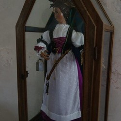 Über dem Schrank befinden sich ein freigelegtes spätgotisches Apostelkreuz und ein Bild von der Verehrung Jesu mit nackter Schulter. An der rechten Wand hängt ein bemerkenswertes Ölgemälde, ebenfalls aus der Spätgotik, mit einer Inschrift über die Begehung der Arche Noah. In der Nische unter dem zur Turmkammer angrenzenden Fenster ist eine Statue des heiligen Antonius und rechts daneben ein Kreuzigungsbild vorhanden.