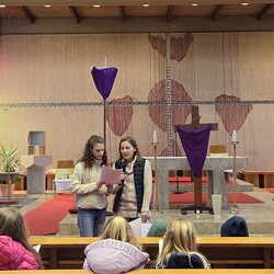 Die Erstkommunionkinder durften dann Kressesamen in ein Kreuz legen, denn in jedem Samenkorn steckt Hoffnung. Diese Hoffnung muss gepflegt werden: Wir wollen ihr Licht und Wärme und Wasser geben, damit sie keimen und wachsen kann. Das feiern wir zu Ostern!
