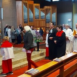 Ich lud die Mitfeiernden ein, im Stehen sich vorzustellen, verbunden mit der Erde zu sein, mit den Händen sich zum Himmel öffnen, im Gleichgewicht zu bleiben und die Kraft meiner Herzmitte zu spüren.