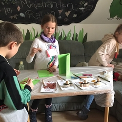 Am 3. März trafen sich von 15 bis 17 Uhr die Erstkommunionkinder zum zweiten Mal im Pfarrheim, um sich auf ihr Fest vorzubereiten. Es waren wieder so viele helfende Hände von Müttern und Vätern vor Ort, dass alles wunderbar funktionierte.