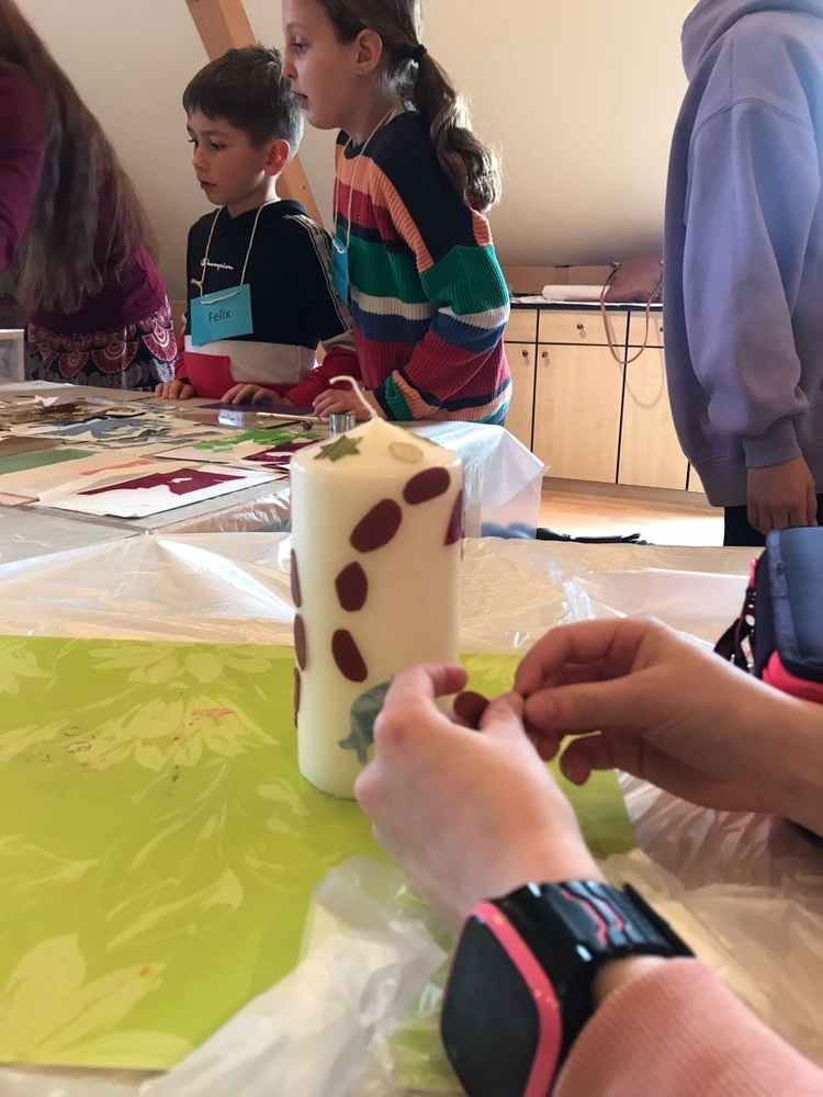 - Wir gestalten eine Erinnerungskerze zum Evangelium „5 Brote und 2 Fische“