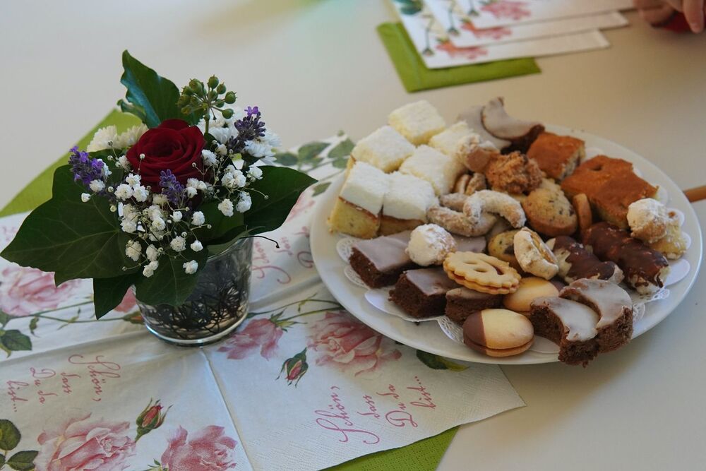 Beim anschließenden Pfarrcafe des Kirchenchores setzte sich diese freudige Stimmung fort und alle genossen bei Kuchen und Kaffee oder Tee die nette Gemeinschaft!
