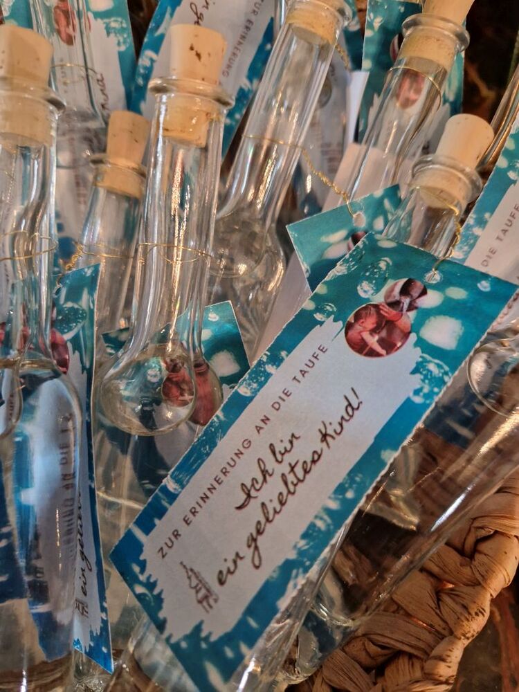 Als Zeichen des Gesegnet-Seins bekamen alle Taufkinder, die beim Gottesdienst mitfeierten, ein Weihwasserfläschchen geschenkt.